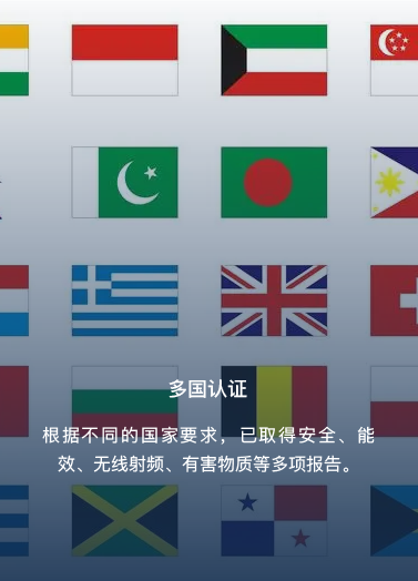 根据不同的国家要求,已取得安全、能效、无线射频、有害物质等多项报告。